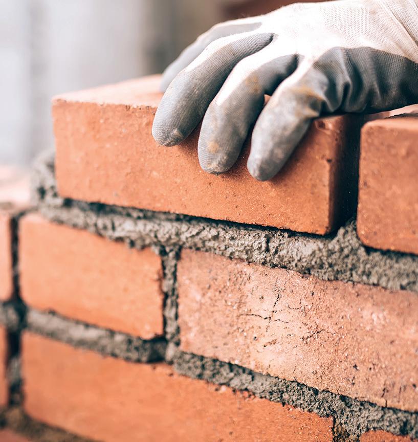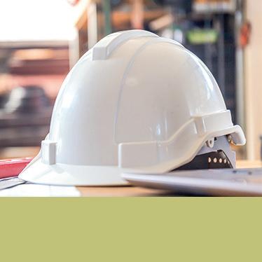 SAFETY HELMET, NAILS, HAMMER AND BRICKS