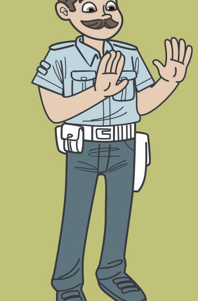 02 LOOK AT THE PICTURES BELOW. WHAT GESTURES IS THE TRAFFIC POLICE OFFICER DOING?