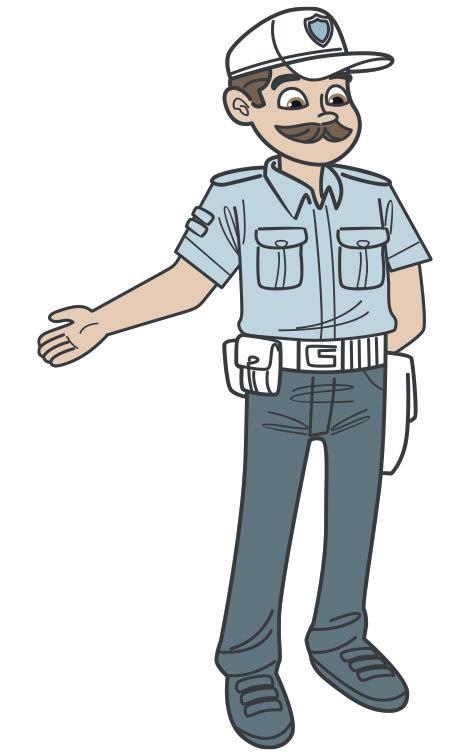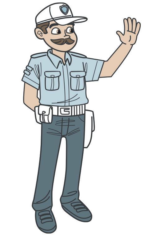 01 WRITE THE NAMES OF THE OBJECTS THAT BELONG TO THE POLICE OFFICER.