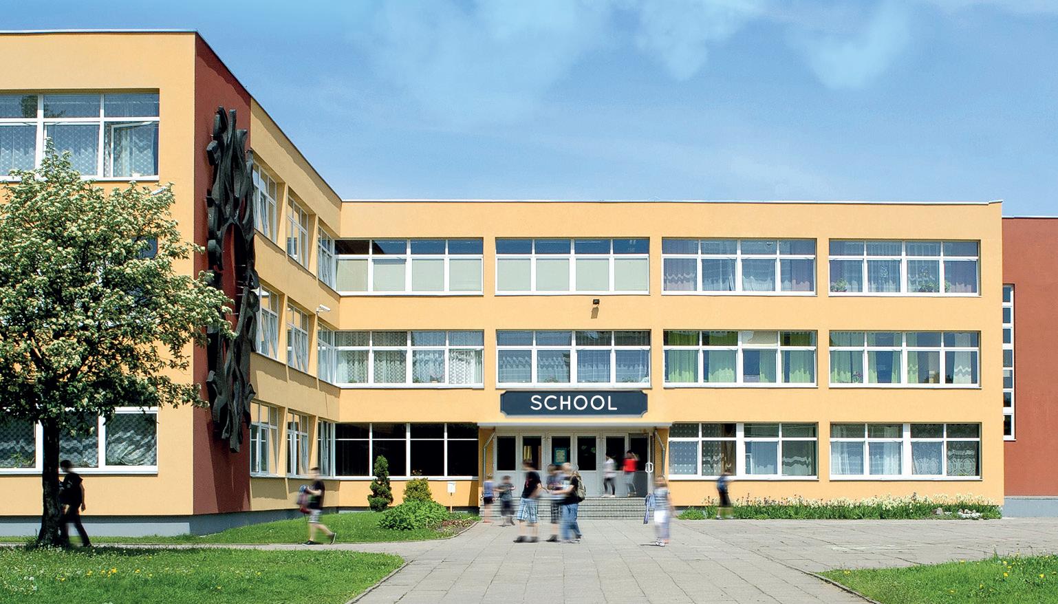 01 LOOK AT THE PICTURE OF A SCHOOL AND ANSWER THE FOLLOWING QUESTION.