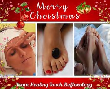 AtHealingTouch Reflexologywe’d liketohelpyou tickoffafew itemsfromyourChristmaslist.You justneedtodecidewhichwellbeing treatmenttochoosefrom!Willitbe thepurerelaxationofaroma reflexologyonyourfeet,a rejuvenatingfacialtreatment,ora warmandindulgenthotstone reflexologypamper?