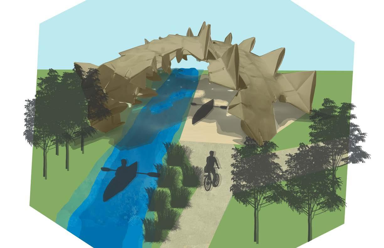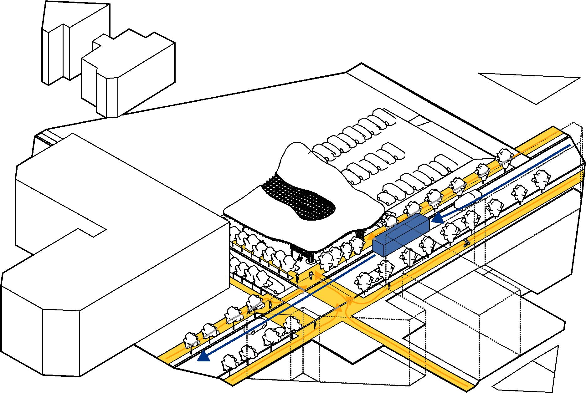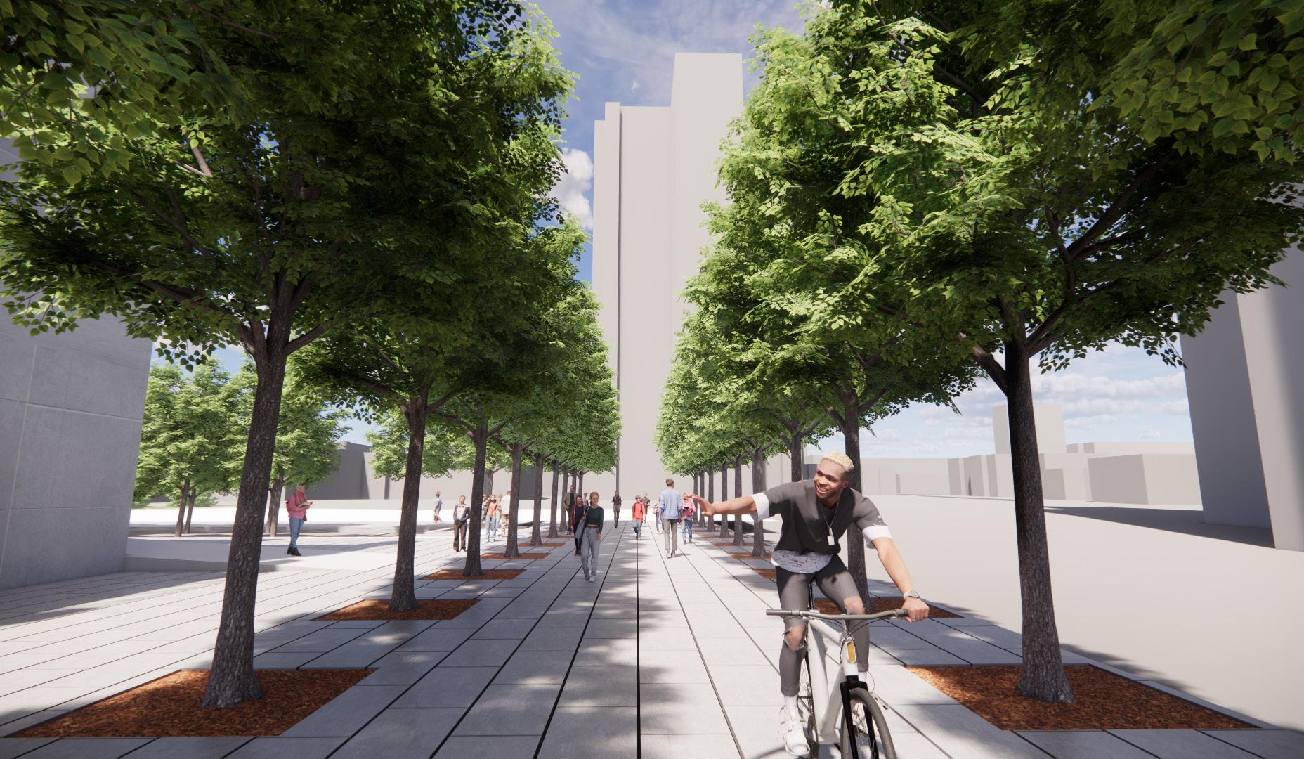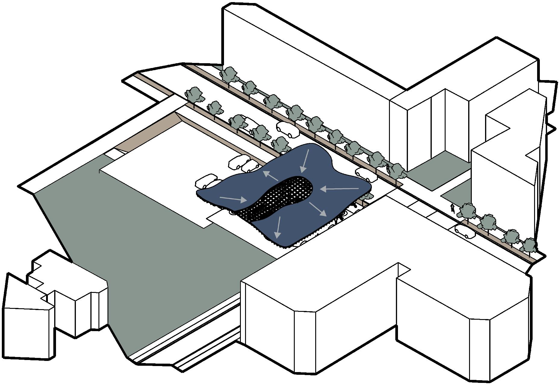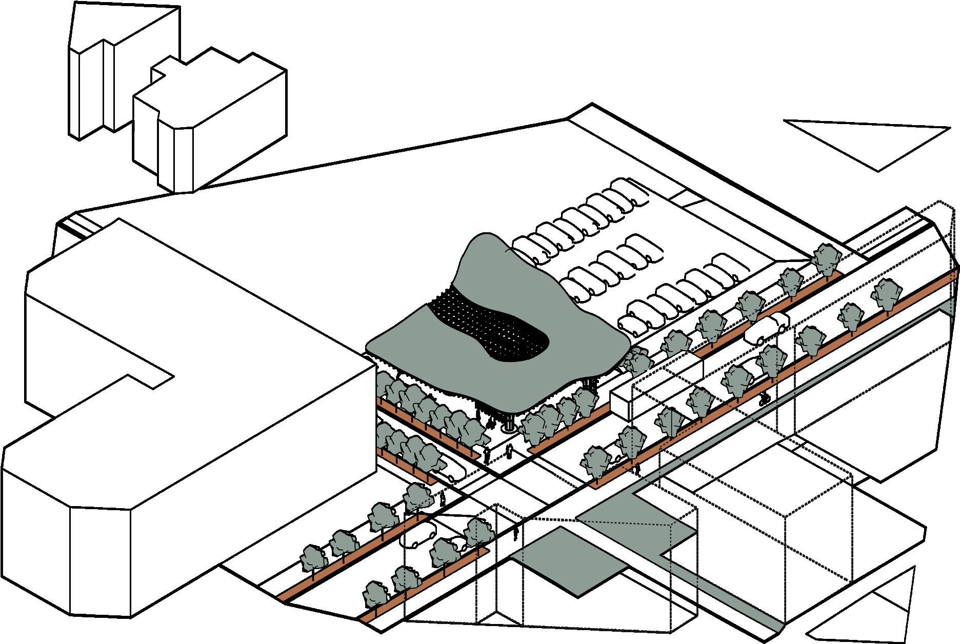 It was decided to use the preexisting curvature of the flower beds to create a stage, lawn, and curved seating that the community could use for gatherings and events. It would also call for the creation of a custom gazebo structure to house the community garden program, which looks to teach residents how to plant crops in an area where food scarcity is a significant issue.
