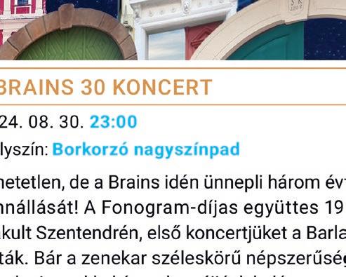Jöjjenek, ünnepeljenek velünk, fedezzük fel együtt a Borkorzóvá alakuló Dunakorzót, hallgassuk a jubiláló, szentendrei kötődésű zenekarokat, a Barlang kertjéből indult 30 éves Brains, illetve a Szentendréhez sok-sok szállal kötődő, félévszázados Vujicsics együttes koncertjét, no és persze a többi fellépőt! Találkozzunk a Rotary Szentendre Jótékonysági Kacsaúsztató versenyén vagy a Japán Feszten a Japán kertben, kísérjük el a Stéger Xavér Ferenc 200 kosztümös séta résztvevőit, nézzük együtt a fényfestést a Fő téren!