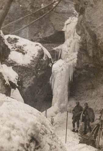 Amikor a klímaváltozás még nem bolondította meg a természetet, akkor készült az itt közreadott felvétel, 1922. november 26-án, a korabeli statisztikai adatok szerint egy átlagos télen. A hét méter magas, befagyott dömörkapui vízesést mutató képeslapot Künsztler Katóka úrleánynak küldték el Budapestre az alábbi szöveggel: „ Pomáz – Gyopárforrás – Csikóvár – Lomhegyi nyereg – Bükki puszta – Sikáros – Bucsina vízesés – Dömörkapu –Annavölgy – Szentendre. Az elején még jól ment a síelés, a hóvihar azonban keresztülhúzta a számításainkat. A kunyhóban tüzeltünk és melegedtünk. Sok üdvözlet és kézcsók:”