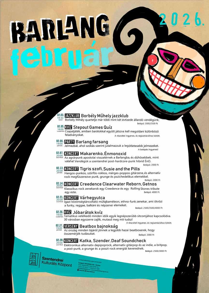 A rejtvény helyes megfejtését 2026. február 19-ig várjuk a szevi@szentendre.hu e-mail címre. A helyes megfejtők között egy páros mozibelépőt sorsolunk ki. A szerencsés nyertes nevét a következő lapszámban tesszük közzé. Decemberi rejtvényünk helyes megfejtése „Csináld magad” volt. A nyertes Virág Zoltán. Nyereménye egy páros mozibelépő a P’Art Mozi felajánlásával.