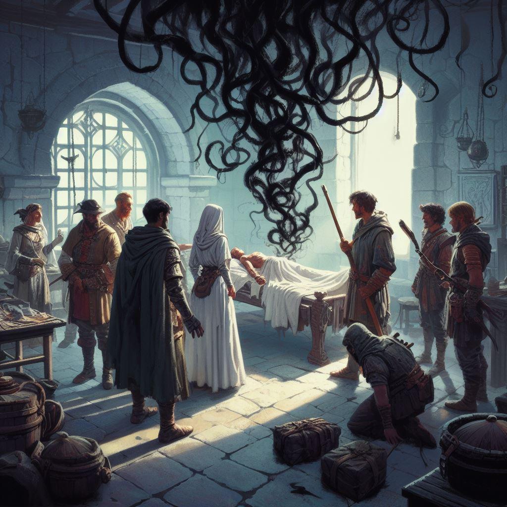 As the adventurers approach to claim their prize, they realize that the vial contains just a single dose of the Elixir of Dawn’s Renewal. But then, the whispers from the Chamber echo in their minds, and they recall a prophecy that spoke of "unity in healing." Combining their strengths, knowledge, and essence, the adventurers are able to amplify the cure, creating enough for all and more to help others