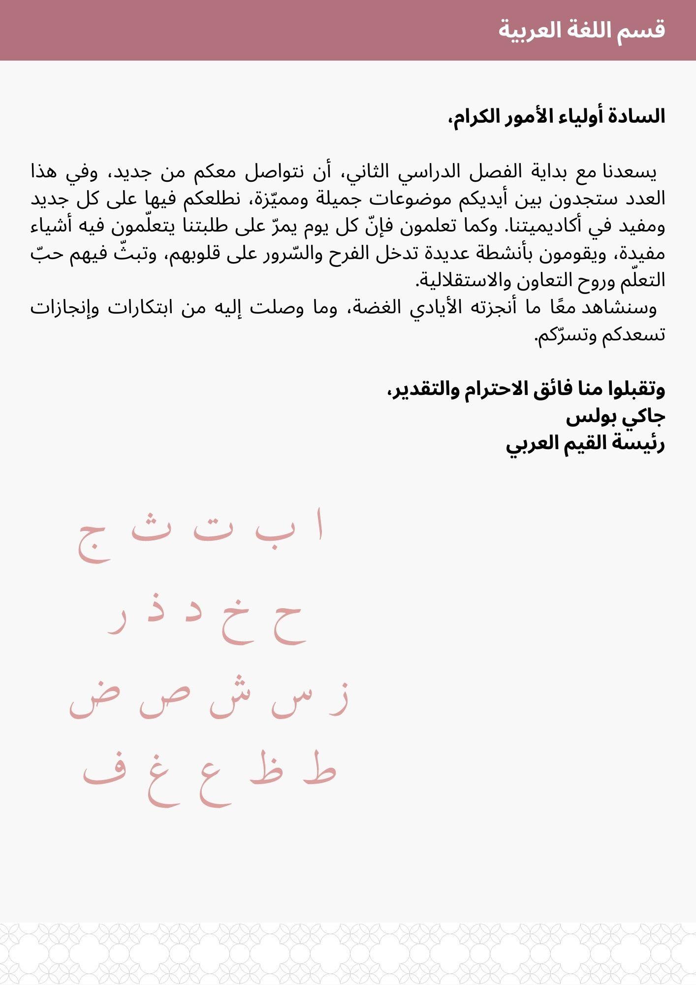 SZPAG January Newsletter - Arabic