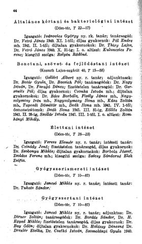 mk, Taposdí Dömötör mb., Deák Ilona mb. 1941. IV. 1-től; demonstrátorok: Deák Ilona 1941. III. 31-ig, Eöllös Zoltán 1941. II. 28-ig, Szollár'István 1941. I I I . 1-tŐL I. o. altiét: Romhányi