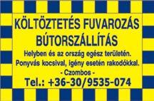 KÖLTÖZTETÉS, ÁRUFUVAROZÁS helyben, az ország és EU egész területén ponyvás teherautóval, igény esetén rakodókkal. Tel.: 06-70/511-1200 –Tóth József–