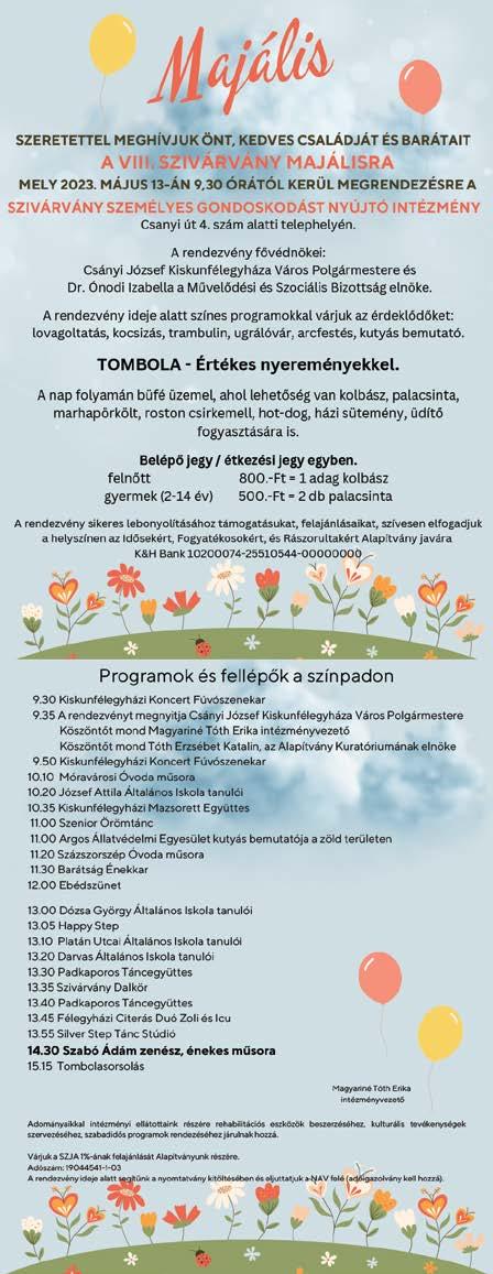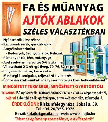 Megjelenik Kiskunfélegyházán és a környező településeken minden pénteken 20.000 példányban. Lapzárta: kedd 17 óra ; Felelős kiadó: Bozsó István Szerkesztőség: Kkfháza, Dr. Holló Lajos u. 2. Nyitvatartás: hétfőtől - péntekig: 8-17 óráig