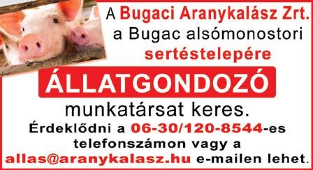 Állattartó telepre munkatársat keresünk Csongrád-Csanád vármegyében, szolgálati lakás biztosításával. Érd.: 06-30/967-7700 (Kiskirálysági Ménesbirtok Kft.)