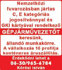 helyben és az ország egész területén igény esetén rakodókkal. Tel.: 06-30/902-5420 (Terjék Krisztián)