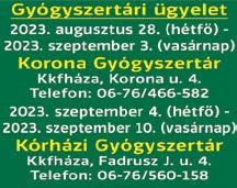 Rendelési idő: 2023. szeptember 1-től: