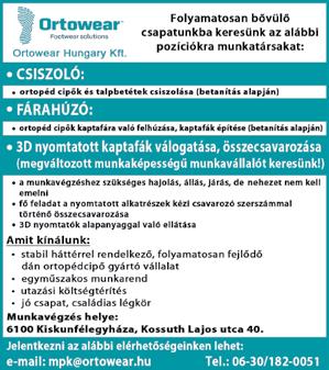 Női és férfi munkaerőt veszünk fel. Szállás megoldható. Tel.: 06-20/2679980 (Kovács János)