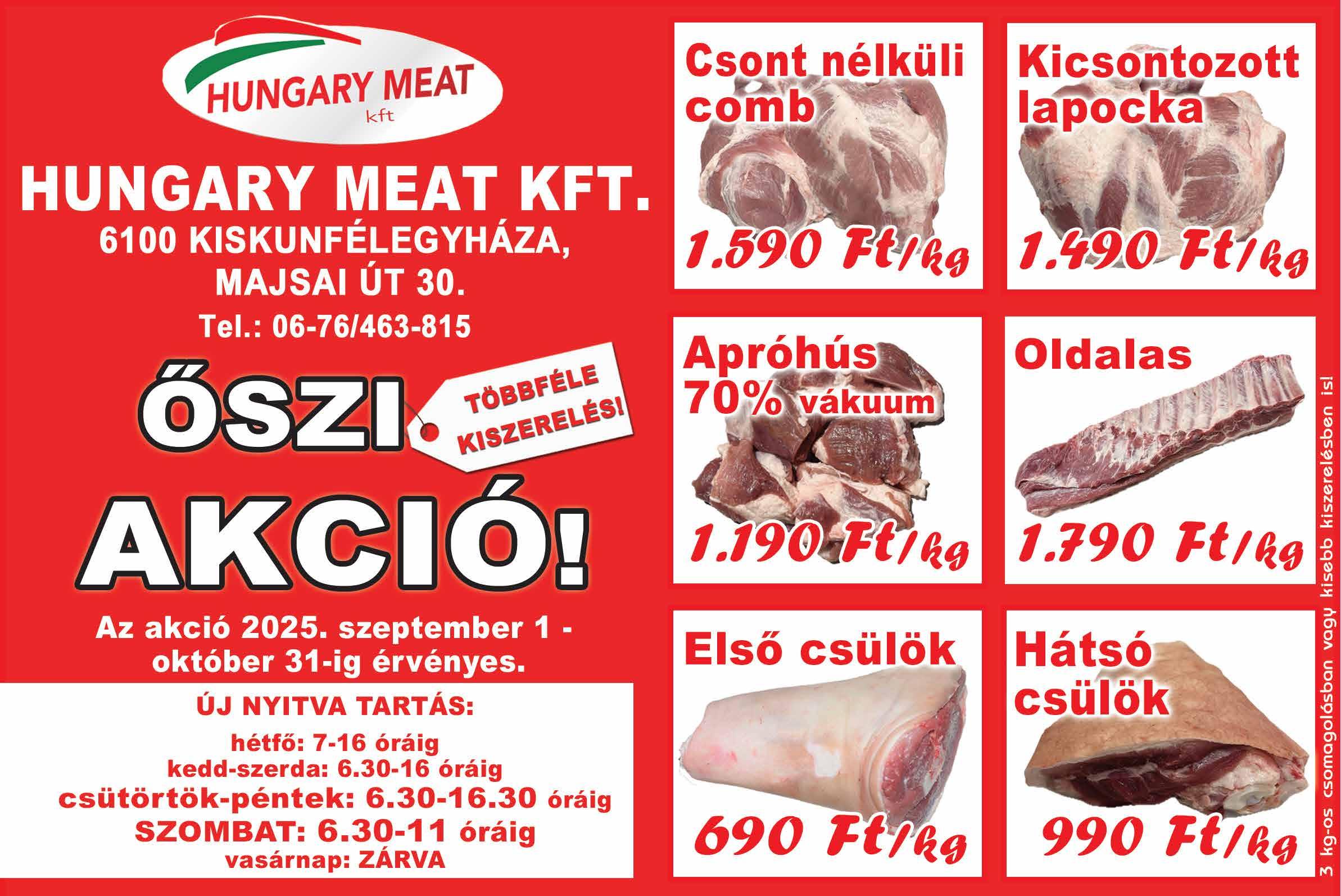 Nyitva: hétfő-szombat 7-15, vasárnap 7-12 óráig. Érd.: 30/855-9693, 30/643-4985, 30/436-0454