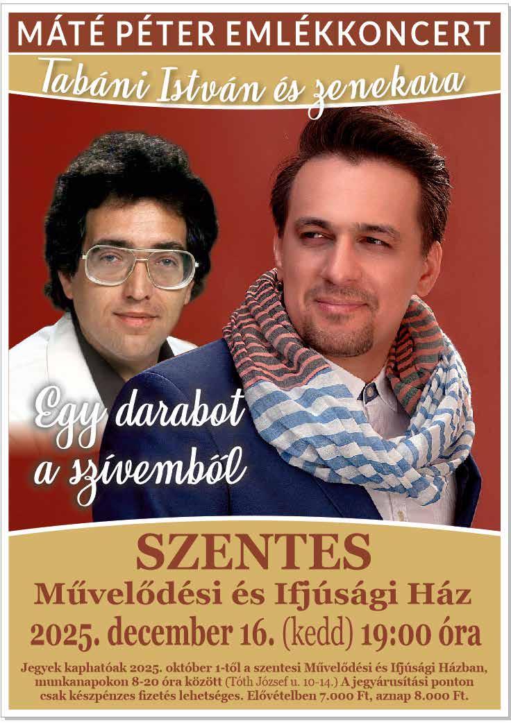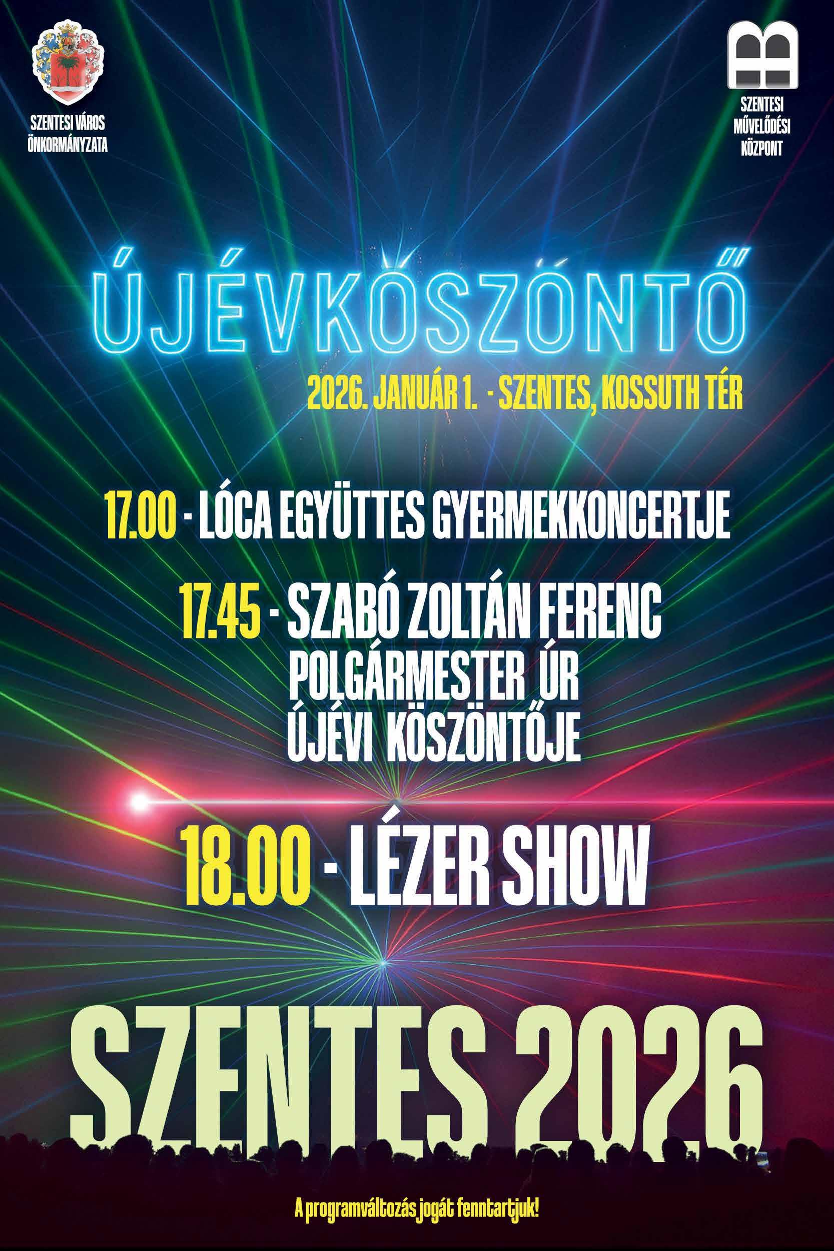 A Szentesi Mûvelõdési Központ ezúton értesíti látogatóit, hogy minden szolgáltatási helyünk 2025. december 22. és 2026. január 4. között ZÁRVA TART.
