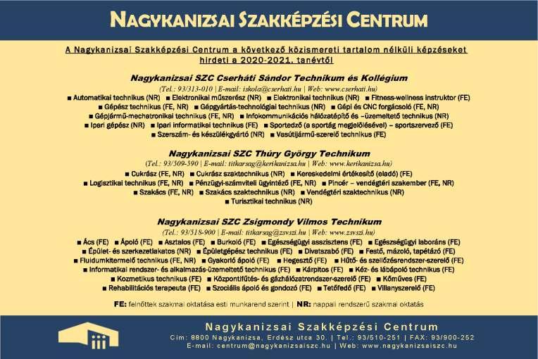 Kiadja a Kanizsa-InfóLapkiadóKft. a Hungária Szuperinfó Országos Laphálózat tagja. Szerkesztőség: 8800 Nagykanizsa, Ady Endre u 7. Postacím: 8800 Nagykanizsa Pf 255 Telefon: 93/310-917 E-mail: nkszuperinfo@chello.hu Felelőskiadó: Rudolf Tamás ügyvezető Nyomdaielőállítás: ADC MEDIA a.s Szerkesztőségünk a jogszabályokba ütköző, etikailag kifogásolható hirdetések közlésétől elzárkózik A megjelent hirdetések tartalmáért, a nem általunk készített hirdetésekért felelősséget nem vállalunk A hirdetésekkel kapcsolatos reklamációt a megjelenéstől számított 8 napon belül fogadunk el Panaszával a Zala Megyei Békéltető Testülethez fordulhat (8900 Zalaegerszeg, Petőfi u. 24., Tel: 06-92/550-513 zmbekelteto@zmkik.hu)