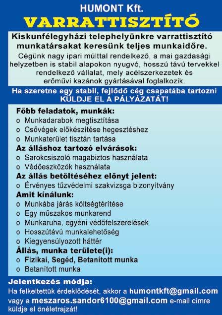 A megjelent hirdetések tartalmáért felelősséget nem vállal.