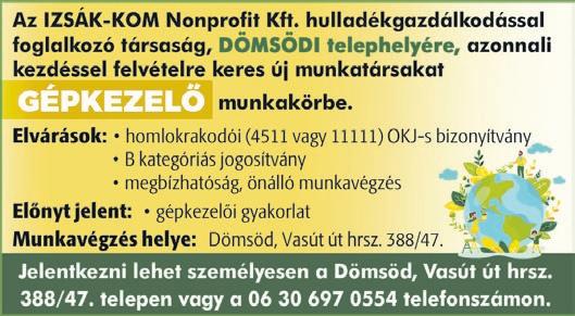Kertépítéssel és fenntartással foglalkozó cég keres alkalmazottat Dunaújváros és környékéről. Előny: benzines gépek ismerete. Feltétel: „B” kategóriás jogosítvány. Jelentkezés: 06-20/9273859. Csetepaté Kft.
