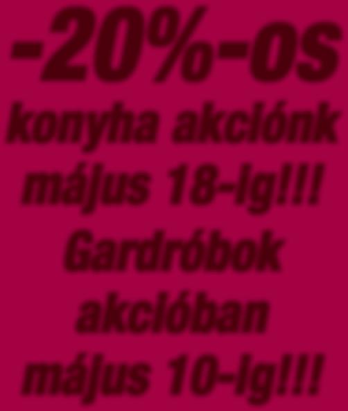 2024. április 19. 8 HIRDETÉS 1427329 AXEL BÚTORÁRUHÁZ Nyitvatartás: h.-p.9-12, 1330-17 Szo. 9-13 9027 Győr, Puskás T. u. 8. Tel.: 0630/6873-505 • www.axelbutor.hu KONYHAI ELEMEK SZÉLES VÁLASZTÉKA LÁTVÁNYTERV KÉSZÍTÉS KONYHAI GÉPEK CSAPTELEPEK ÉS MOSOGATÓTÁLCÁK Az akció a készlet erejéig tart. -20%-os konyha akciónk május 18-ig!!! Gardróbok akcióban május 10-ig!!! ROCK GARDRÓB LUX GARDRÓB ARIZÓNA GARDRÓB 203*160*60 cm 203*180*60 cm 203*140*60 cm 152.900 Ft 151.500 Ft 131.500 Ft 303.900 Ft 240*279*60 cm BOSTON GARDRÓB BANGKOK GARDRÓB 203*318*60 cm 294.900 Ft 203*239*60 cm 233.900 Ft CÉZÁR GARDRÓB 258.900 Ft 240*254*60 cm 203*200*60 cm FŐNIX GARDRÓB 166.500 Ft STONE GARDRÓB NEO GARDRÓB 203*180*60 cm 166.000 Ft 145.900 Ft 169.900 Ft 167.900 Ft 184.500 Ft 287.500 Ft 184.900 Ft 327.500 Ft 259.900 Ft 337.500 Ft