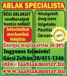 1202 Bp., Nagykőrösi út 203. Manna 75 Bt. Ny.: H-P: 9-17 T.: 06-30/694-1063 • T/F.: 06-1/605-2388 gabiablakok@gmail.com • www.gabiablak.hu