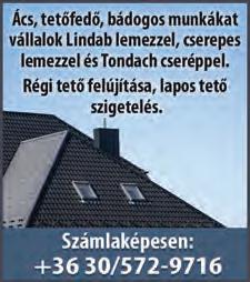 TETŐFEDŐ, BÁDOGOS, ácsmester, kisebb-nagyobb javítást, komplett tetőfelújítást vállal. Akár azonnali kezdéssel. +36-20/483-3921 SOS TETŐJAVÍTÁS , tetőfedés cserepeslemezzel, ereszcsatorna javítás. 20% kedvezmény októberben. +36-30/408-2909