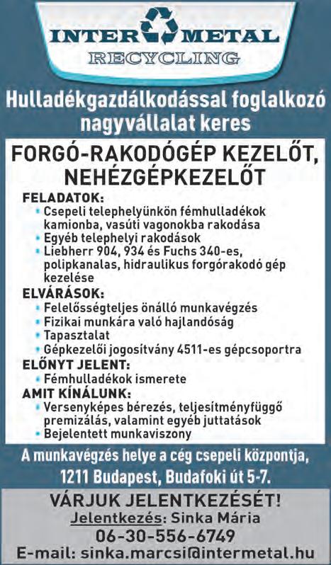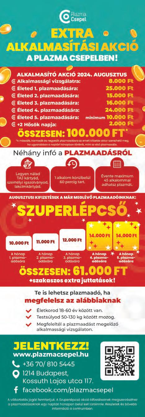 Érdeklődni: 06-70/450-6098 munkanapokon 7-14 óráig