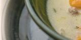 3. Az evőkanálnyi lisztet kevés hideg vízben csomómentesre keverjük, hozzávegyítjük a tejfölt és besűrítjük vele a levest. Jól kiforraljuk. Ha kész, levesszük a tűzhelyről, hozzákeverjük az összevágott kaprot, és kis citromlével ízesítjük. Előkészítés: 35 perc, főzés: 1 óra