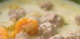 2. Közben elkészítjük a gombócokat: a darált libahúst összekeverjük a zsemlemorzsával meg az egész tojással. Kis golyókat formázunk belőle, és belerakjuk a levesbe. A birset meghámozzuk, csutkáját kivágjuk, a felkockázott húsát is a fazékba öntjük. Kis lángon forraljuk a levest. Ha már puha a zöldség, akkor még tíz percig főzzük.