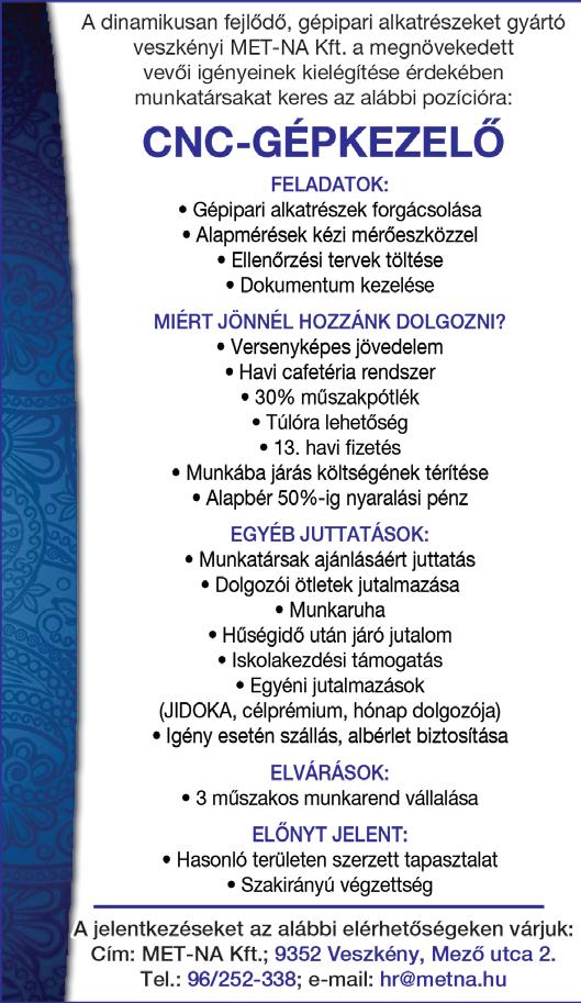 Ha szeretne egy jó csapat tagja lenni, családias légkörben, kiszámítható munkarendben, versenyképes fizetéssel és hosszú távú megbecsüléssel, jelentkezzen nálunk!