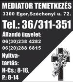 Eger, Rózsa K. u. 1. (Nagybuszmegállóhoz közel) Vezetékes szám: 06-36/788-629