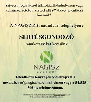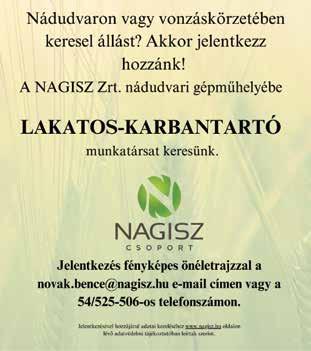 Jelentkezés az állásra fényképes önéletrajzzal e-mailben: info@tvg-nadudvar.hu