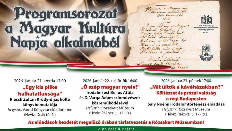 – Intelem a múltunkból: ha megdobnak kővel, dobd viszsza kenyérrel. Ez sok esetben nagyon nehéz, de azt kívánom mindenkinek: a kenyér legyen a válasz, és törekedjünk a winwin szituációkra, mindannyiunk javára. Elindultunk ezen az úton, nemcsak Hévízen, hanem a nagytérségen belül is. Azt kívánom valamennyiünknek 2026ra s a következő esztendőkre: legyen erőnk ahhoz, hogy mindig a kenyér legyen a válasz… (pá)