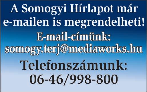 TELEFONSZÁM ÉS E-MAIL-CÍM LAPTERJESZTÉSÜGYBEN: 06-94/999-120; ELOFIZETES@MEDIAWORKS.HU