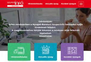 A Szuperinfó fizetett hirdetéseket tartalmaz, melyek valódiságát a szerkesztõség nem vizsgálja, tartalmáért felelősséget nem vállal. Irodáink: Keszthely, Széchenyi u. 1-3., Tel.: 83/511-890 kszinfo@t-online.hu Tapolca, Nagyköz u. 7. Tel.: 87/510-268 tapolcainfo@tapolcainfo.t-online.hu Hévíz, Petőfi u. 10-12. Tel.: +36-30/349-5524