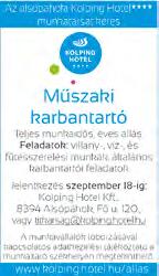 Hévízi étterem éves vagy beugrós állásra pizzaszakácsot, ételfutárt és németül beszélő felszolgálót felvesz. +36-30/6546735 Fairteam 2000 Kft. Kamionsofőrt felveszünk éves állásra. Érdeklődni: Pro-Money Kft. +36-20/9749358