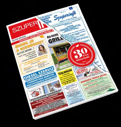 30 éve, 1990. szeptember 18-án jelent meg Keszthelyen az első Szuperinfó. Ez alkalomból jövő héten ünnepi számmal jelentkezünk, melyben hirdetőink részére akciós megjelenést biztosítunk. Szeptember 9-15. között minden, ünnepi számunkba feladott apróhirdetést 50%-os áron veszünk fel. Keretes hirdetőink részére az évforduló alkalmából megnövelt felületet, 30%-kal nagyobb hirdetést adunk ajándékba. A jövő heti újságban keretes hirdetést megjelentető hirdetőink között 10.000 Ft-os vásárlási utalványokat sorsolunk ki, partnereink felajánlásából.