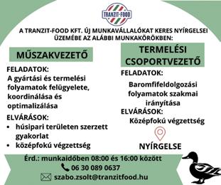 Önéletrajzokat nettó bérigény megjelölésével a munkaugy@triagro.hu email címre várjuk.