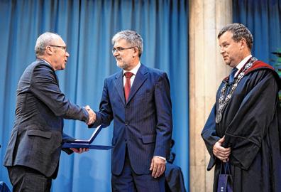 EN n A Pannon Egyetem Gazdaságtudományi Kara központi tanévnyitó ünnepségen adta át a Volkra Ottó díjat Porga Gyula polgármester (balról) dr. Ladányi Istvánnak.