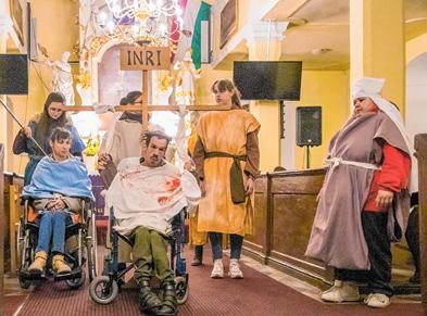 Az országot bejáró előadás keretében mozgássérültek és segítőik együtt adják elő Krisztus szenvedéstörténetét FOTÓ: RUMPLER