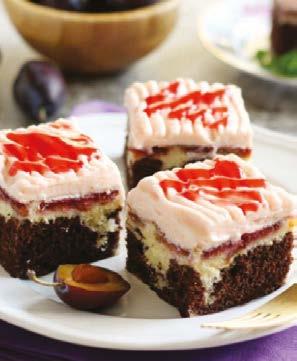 7.Ha a sütemény megsült, rácsra borítjuk, kihűtjük és a szilvás felére rákenjük a krémet, majd a szilvapürével díszítjük.