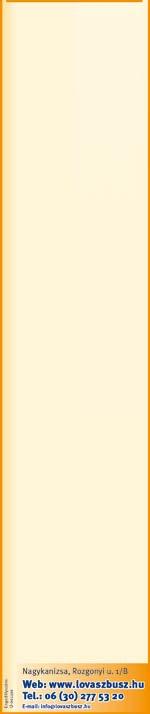 Felelős kiadó: Dr. Kovács Juliánna ügyvezető igazgató Kiadó: Szuperinfó Magyarország Média Kiadói Kft., 8200 Veszprém, Házgyári út 12. • Felelős szerkesztő: Sárvári Viktória • Szerkesztőség, hirdetésfelvétel: Nagykanizsa, Ady Endre út 12. Telefon: (93) 516 120, e-mail: nagykanizsa@maraton.hu • www.kanizsamaraton.hu • Nyomdai munkák: Mediaworks Hungary Zrt. • 2024. október 11. Megrendelés száma: N1/2023 • A lap ingyenes • Terjeszti a MédiaLOG-DMHM Zrt. Terjesztési területek: Nagykanizsa, Letenye, Zalakaros és vonzáskörzetük. • ISSN 1789-7149 • A Szerkesztőség fenntartja magának a jogot az olvasói levelek tartalmának szerkesztésére és közlésére. A kiadó az általa megjelentetett lapokba nem fogad be politikai hirdetéseket.