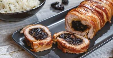 1.A sajttal és aszalt szilvával töltött, baconbe göngyölt pulykamell elkészítéséhez az aszalt szilvát 30 percre beáztatjuk a vörösborba, majd leszűrjük.