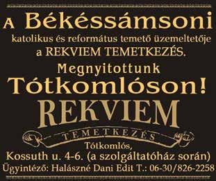 Ház eladó Tótkomlós, Toldi u. 2. (06-30-621-3499. Gádoroson tanya földdel eladó, kiadó vagy autóra, szentesi házra cserélhető. ( 20/999-4903. Csorváson lakóház eladó. ( 06-20-332-4735