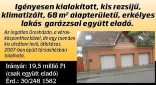 Oháza, Martinovics utcában parasztház eladó.( 06/70/227-4047 Oh.-Rákóczitelep, Fő utcán 1000 m2-es, összközműves zártkert eladó. (06/20/9445-960 Orosháza központjában a Főtértől 50 méterre tiszta,rendezett társasházban ELADÓ első emeleti, 37 négyzetméteres, 1 szobás, erkélyes, redőnyös, egyedi, gáz, víz, villany, tégla építésű lakás. Iá: 8.990.000.FT. Igény esetén Garázzsal együtt. Ugyanitt a második emeleten 44 négyzetméteres erkélyes, redőnyös, egyedi, gáz, víz, villany, tégla építésű lakás. Iá: 8.990.000.FT. Igény esetén Garázzsal együtt. A lakások nagyon kicsi rezsivel bírnak és a közös költség minimális! A társasházban közös zárt udvar van játszó térrel, virágokkal, a pincében tárolóval, zárt nagy padlástérrel. Kitűnő választás fiataloknak,komfortot kedvelő idősebbeknek. Érdeklődni: ( 06-20/463-5024