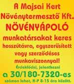 Csanytelekre kertészetbe női és férfi munkaerőt veszünk fel. Szállást biztosítunk. ( 20/467-0993 (Margaréta ev.)