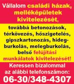 A-Z-ig csapata vállal mindent, ami építőiparhoz tartozik. Régi épületek felújítását, kőműves-, burkoló-, ács-, festőmunkát vizsgázott szakemeberekkl. 0630 3224123, 0630 184-1587.