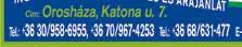 Orosháza, Vörösmarty u. 7. Tel.: 06-30/727-0137