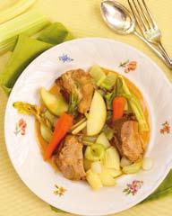 2. Tegyük vissza a húst az edénybe a gyöngyhagymával és a meghámozott répával együtt. Öntsük fel 100 ml vízzel, és pároljuk további 20 percig. Forgassuk meg a húsokat, ha szükséges, pároljuk további 20 percig.