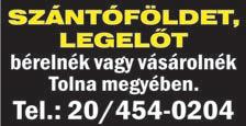 külterületen egybefüggő földterület, összesen 341,3 ha bérbeadó: szántó - 146,7 ha, gyep - 100,6 ha, erdő - 67,7 ha, legelő - 26,3 ha. Érd.: 06-30/305-8431 vagy 06-30/903-5300